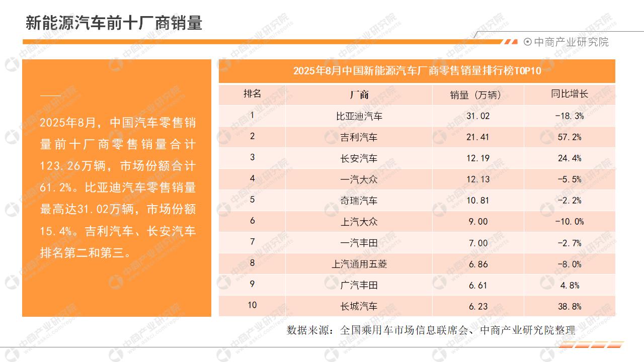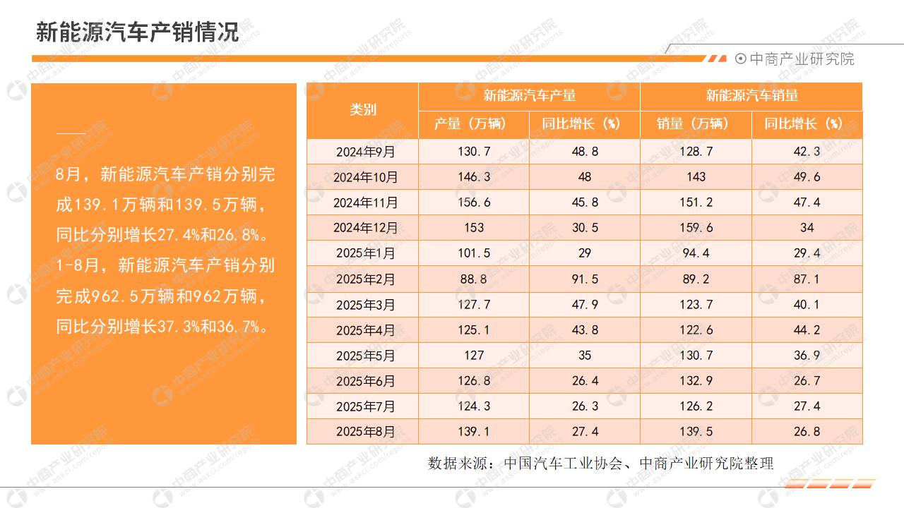 “两新”政策持续发力,个人消费贷款财政贴息等政策及时出台,企业新车型投放热情较高,行业综合整治“内卷”工作继续显效,汽车总体运行平稳。8月,汽车产销同比保持10%以上增长,新能源汽车产销同比增长超25%。