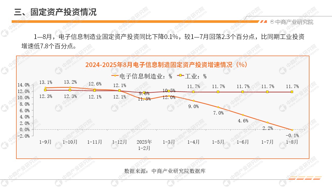 2025年1—8月,我国电子信息制造业生产快速增长,出口有所回落,效益平稳向好,投资增速下滑,行业整体发展态势良好。