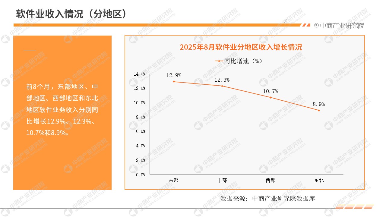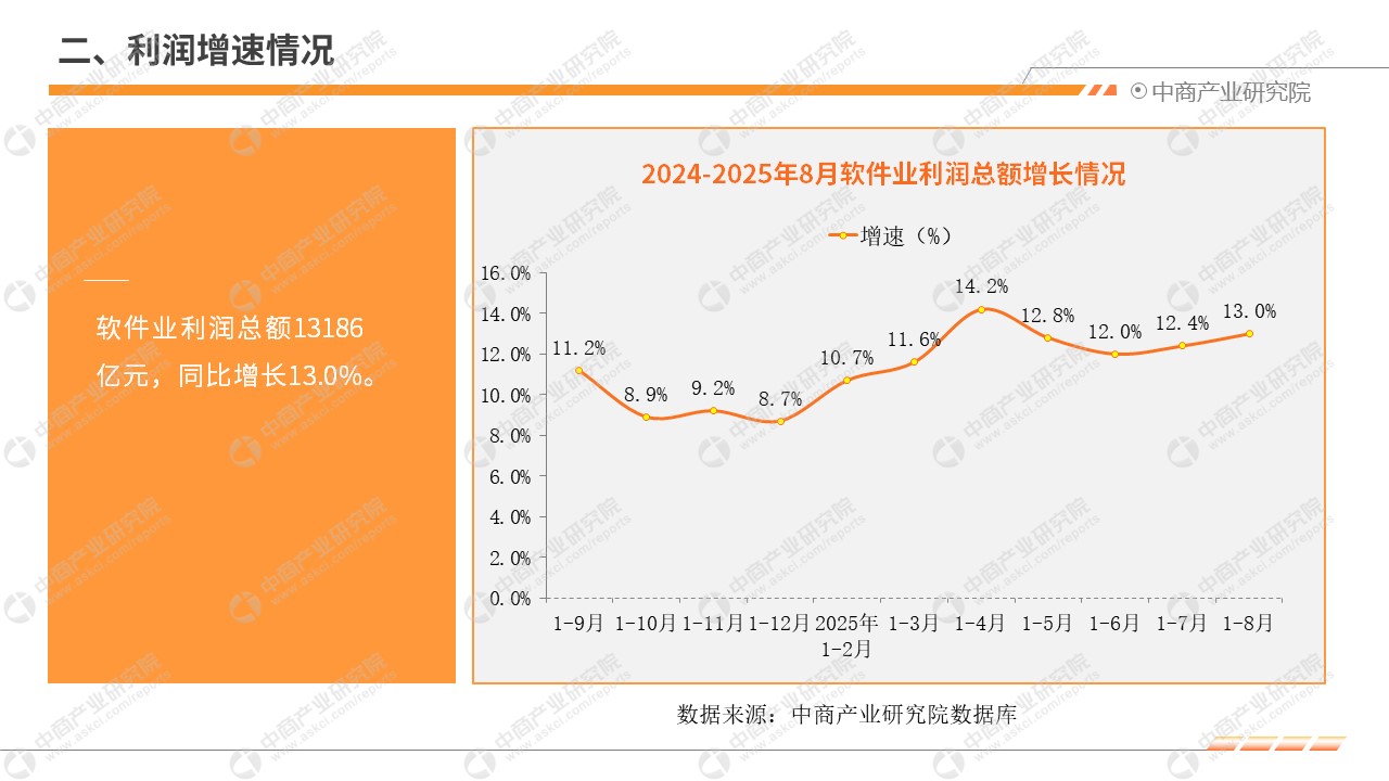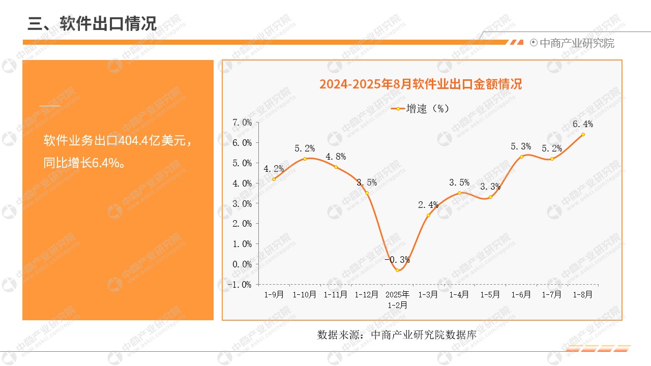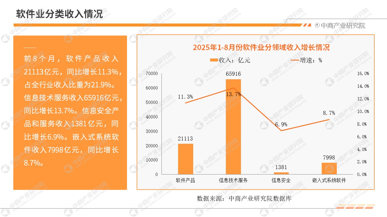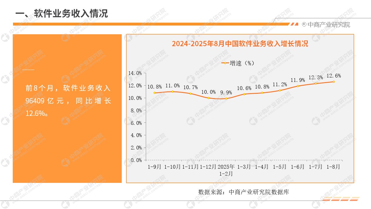 2025年前8个月,软件和信息技术服务业运行态势良好,软件业务收入稳健增长,利润总额保持两位数增长,软件业务出口保持正增长。